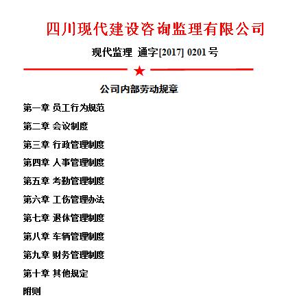 根据公司发展需要和外部环境变化,公司于2017年2月修订并形成新版《公司内部劳动规章》,涉及员工行为规范、公司会议制度、行政管理制度、人事管理制度、考勤管理制度、工商管理办法、退休管理制度、车辆管理制度、财务管理制度和其他规定,共计十个方面。
